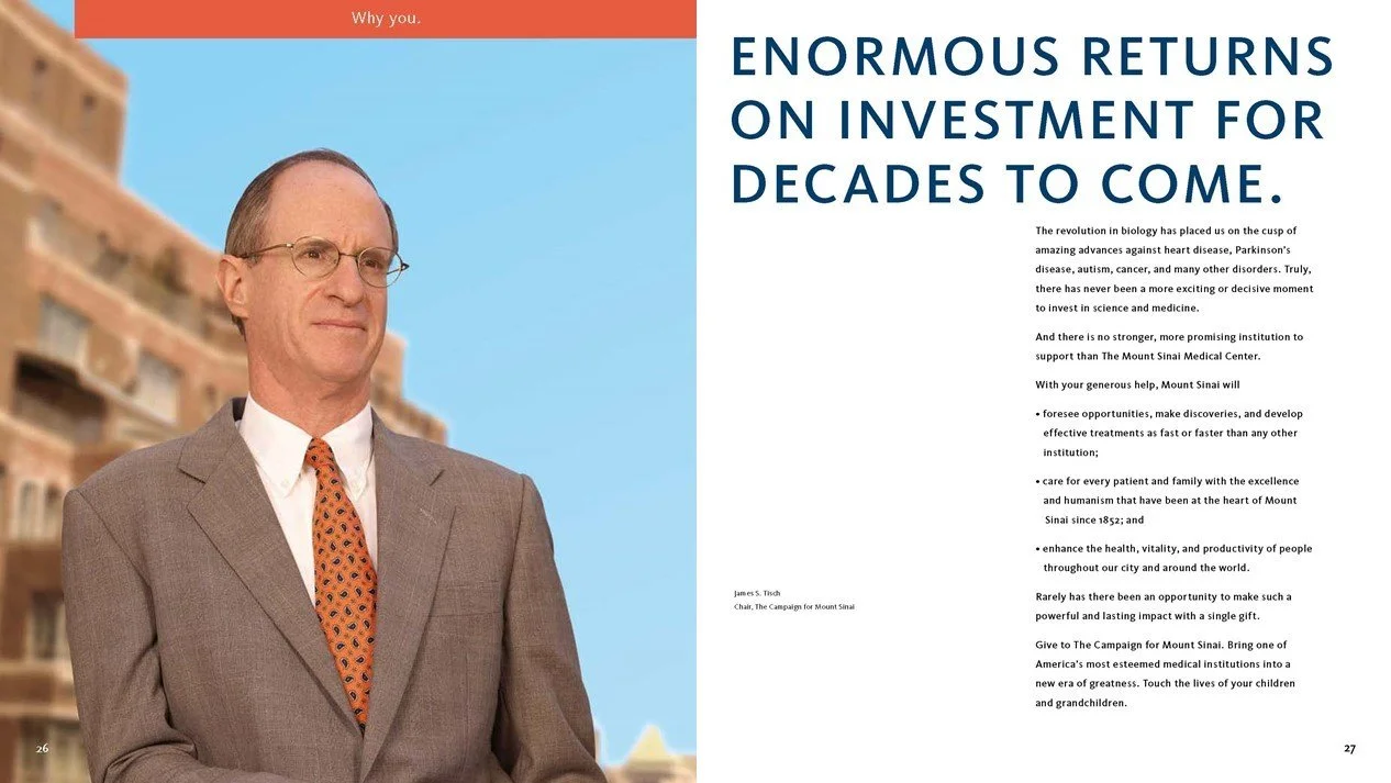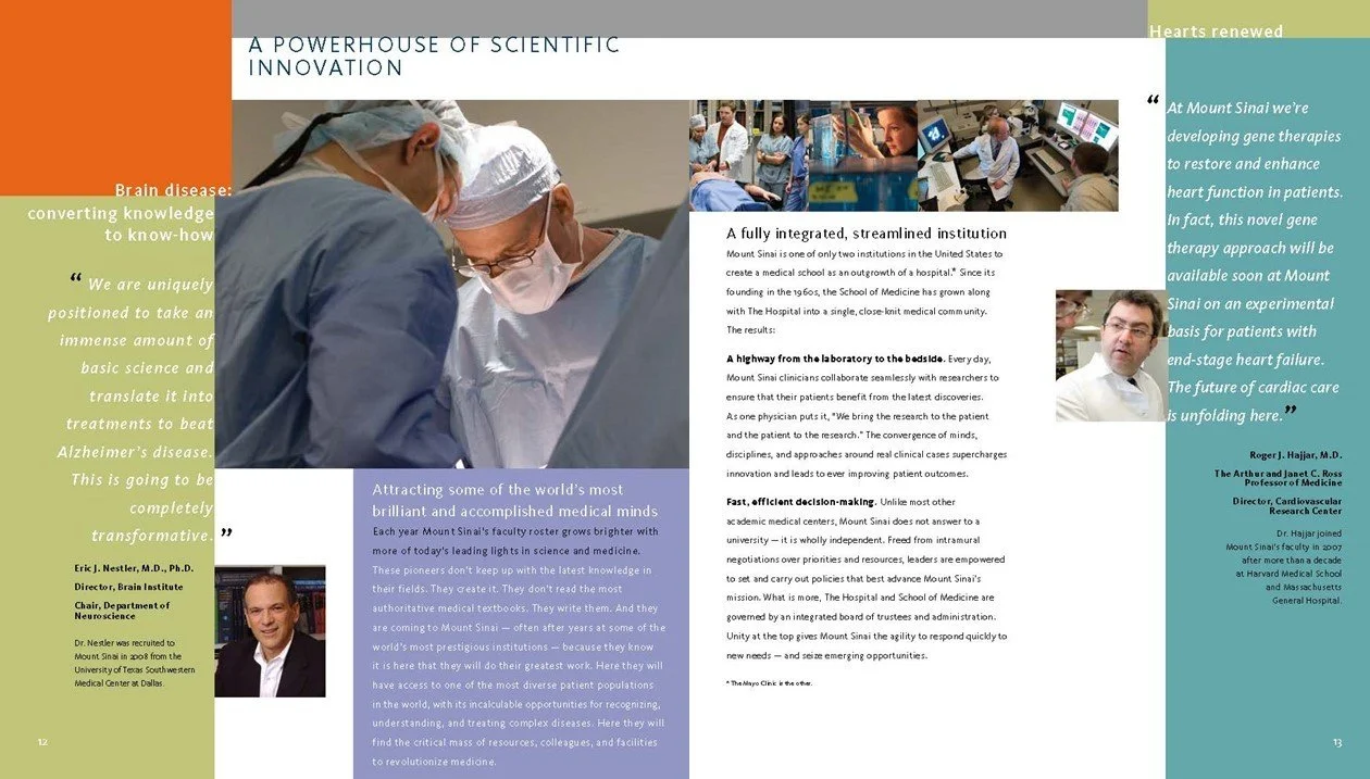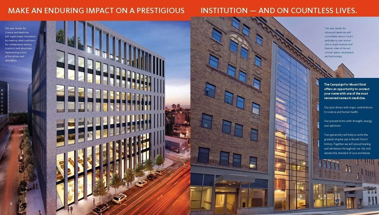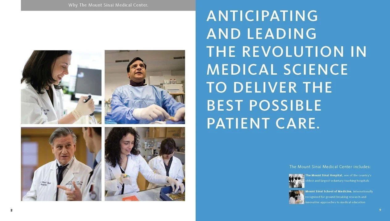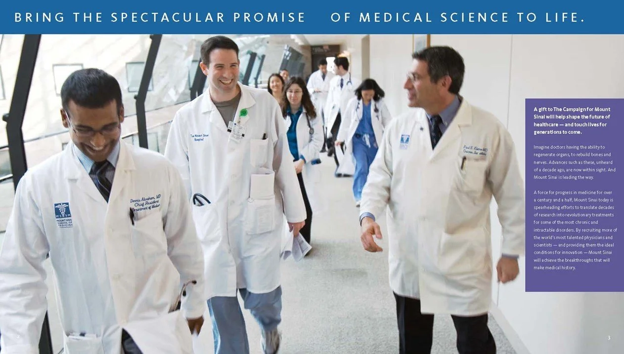Mount Sinai Medical Center As editorial director at Lapham/Miller, I researched, storyboarded, and wrote this case statement brochure for Mount Sinai Medical Center’s successful $1 billion capital campaign. Next Previous
